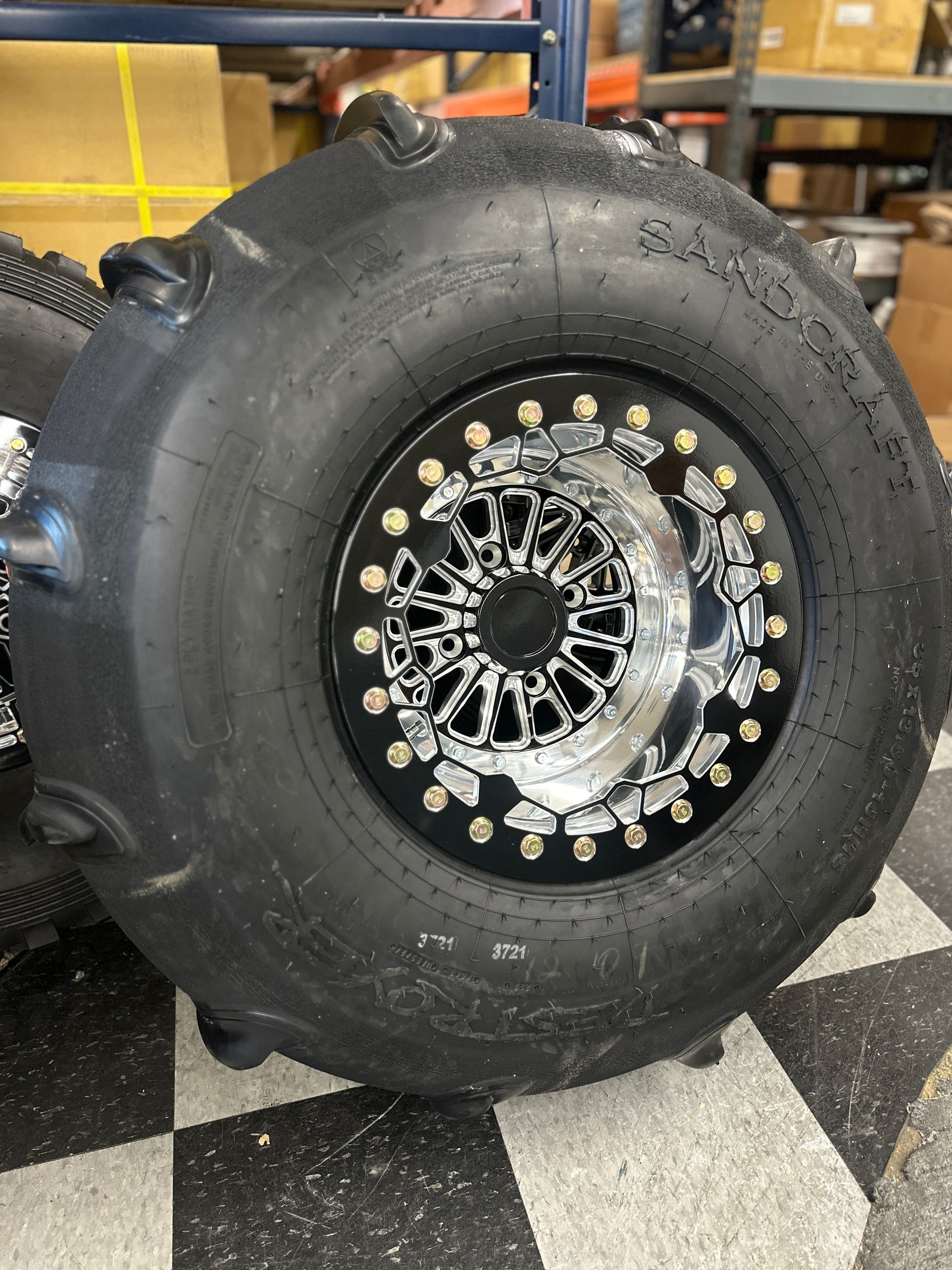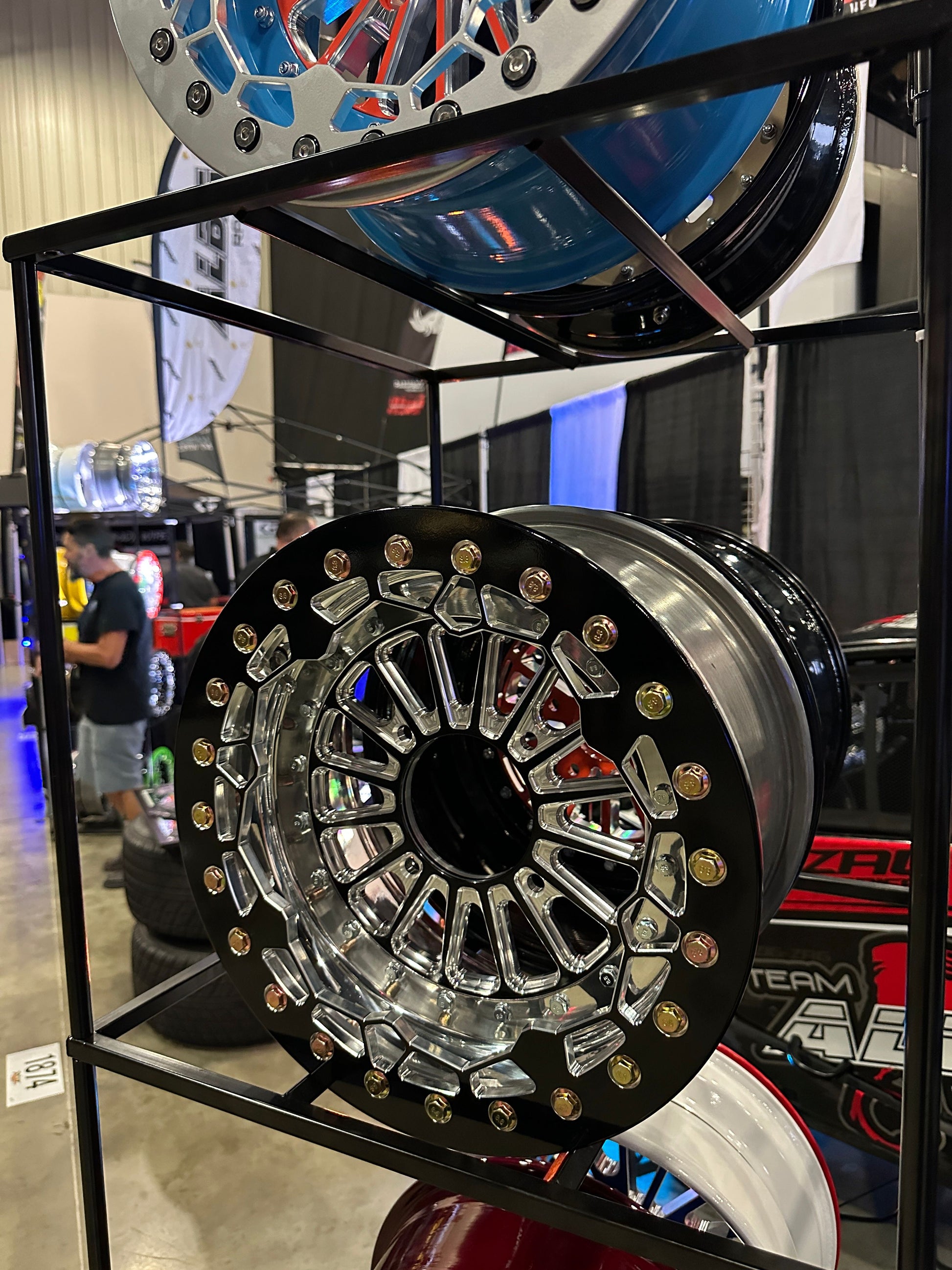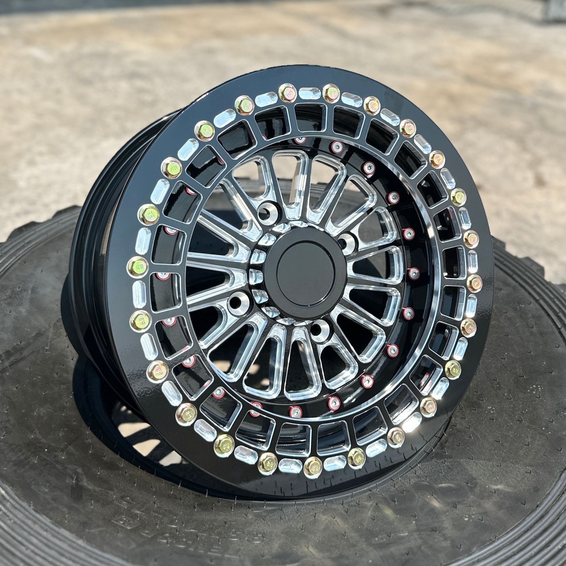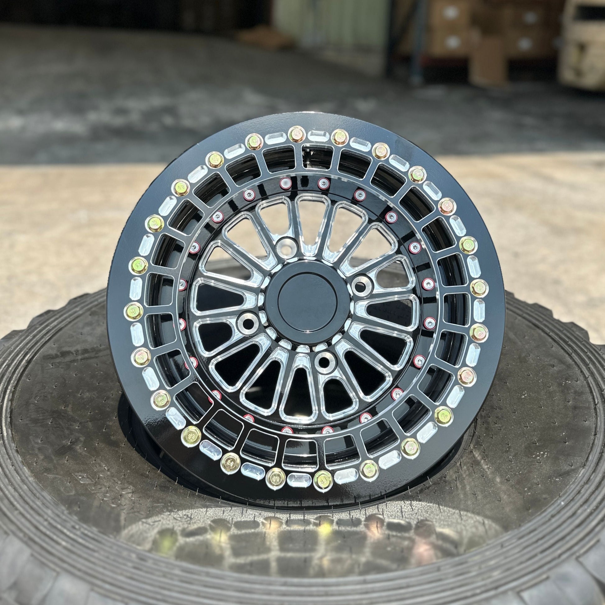 "Baja Crusher" wheels are made from Heat Treated 6061-T6 Spun Aluminum. They feature billet CNC machined 6061-T6 rings, flanges and centers. These are the strongest wheels on the UTV market. Cast wheels will typically crack or "Shatter" on impact due to cast metals being brittle and porous from the manufacturing process. Our wheels are drastically stronger than a cast wheel but if you do experience a sharp high speed impact they will bend and at least not shatter like a cast wheels. They also typically still hold air if bent letting you get home and not leaving you stranded on the trail! This is the reason racers prefer a non-cast wheel. Our bead-lock rings and receivers are the toughest as well as thickest in the industry at 3/8" thick each! Even with all the added material thickness and strength these wheels are still lighter than most cast wheels!